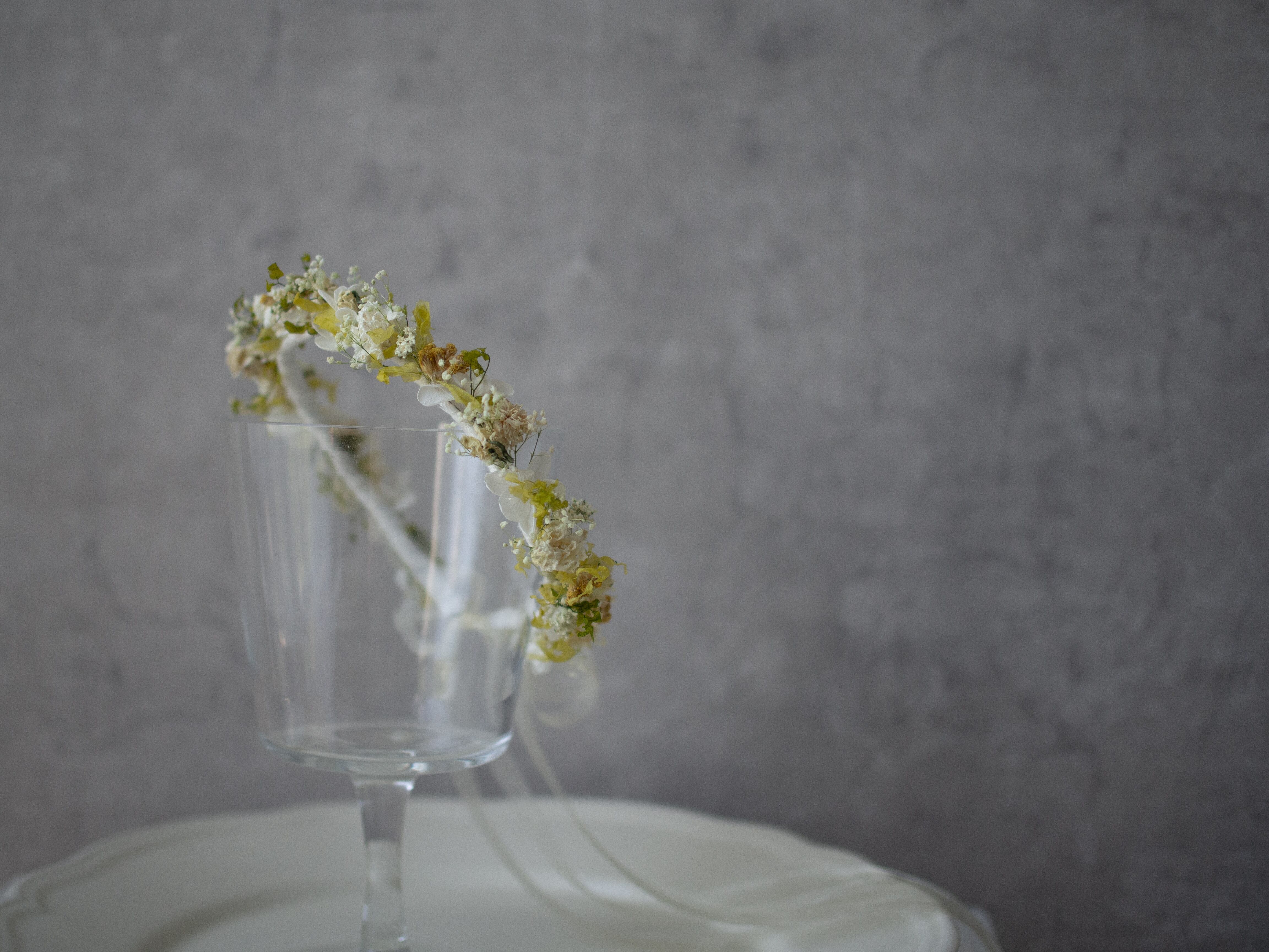 可憐な後ろ姿、そして草花の美しさを活かせるようなリボンを選んでいます。