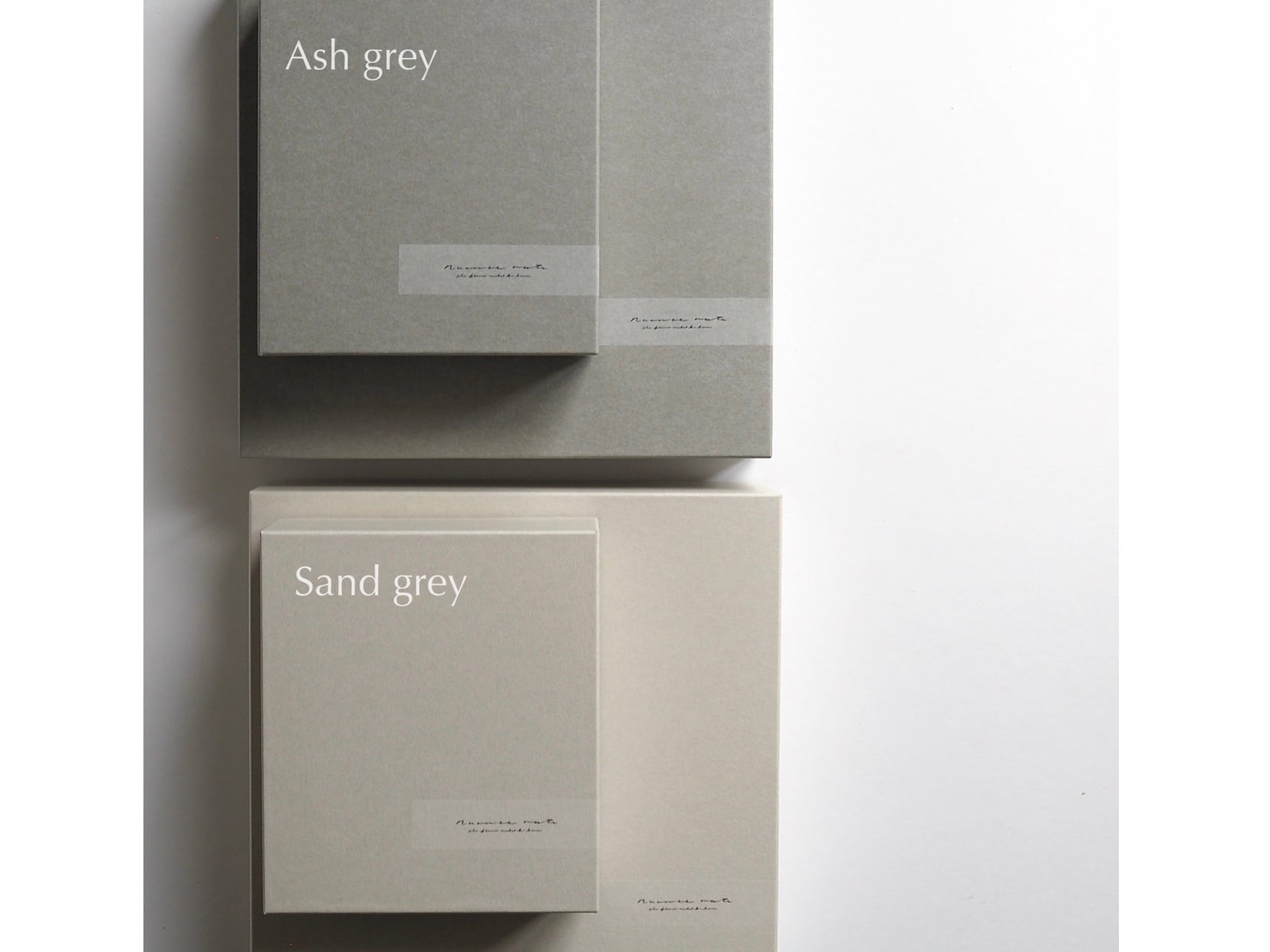 BOXの色希望(Ash grey/Sand grey)がある場合は、備考欄よりお知らせくださいませ。(アイテムによってBOXサイズは変わりますので、ご了承くださいませ。)